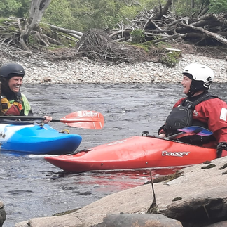 Photos and videos from yesterday's beginners' trip with Jenny & Babs up at Pitlochry / River Tummel (15.08.21) - Thanks to John for selflessly (and cheerily) coming to open up the boathouse on his day off. As you will probably see from the photos, we all had a good time. Jenny & Babs went through equipment checks and a safety talk with us both in the car park at Pitlochry and then before going on the water, checking for river features and finding out what each of us knew/noticed. We were on the water from about 1pm-5pm paddling down the 8km from just below the Pitlochry Dam & Fish Ladder, to Ballinluig with a short stop on a gravel/pebble beach to eat our lunch on the way down.. Jenny & Babs provided a calm and reassuring presence, giving us guidance and coming to our aid when needed. We did lots of ferry gliding practice and entering/exiting the river's faster flowing areas to/from calm water eddies. I hold the honour of being responsible for 66% of the day's 3 'swims', proving that pride comes before fall, capsizing on two occasions just when I thought I'd made it out of the quick water. Those classic 'look at me, I did it....wwwooooah splash' moments. A lovely, tiring day. As always, really nice instructors and good company all round. Long live Edinburgh Kayak Club!